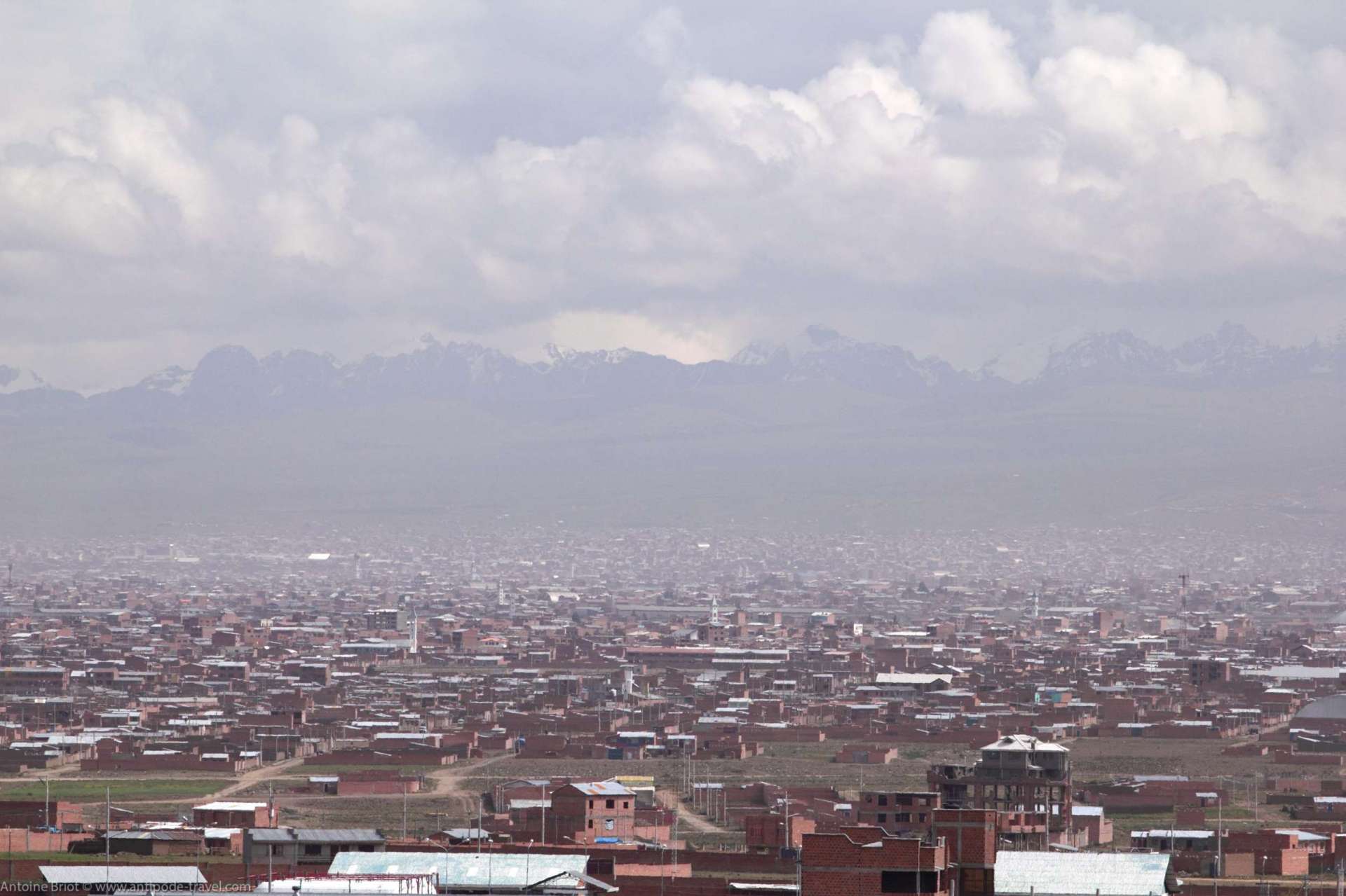 In reality, to be precise, La Paz cannot be dissociated from El Alto ; if the Bolivian capital is cramped at the bottom of its valley, its twin city, which stands on the plain above it, serves as a reservoir of population: half of the population, the most modest, lives there. The two cities, blending indistinctly into each other, meet on the steep slopes (800m of difference in altitude!) that go up to El Alto -or down to La Paz, as you prefer.